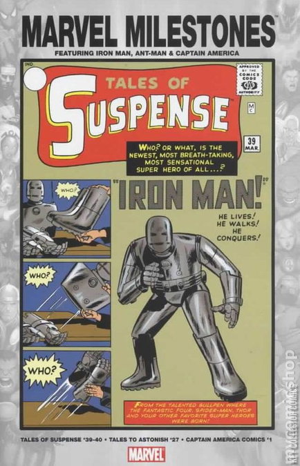 Written by STAN LEE, LARRY LIEBER, JOE SIMON & JACK KIRBY Penciled by DON HECK, DICK AYERS, JOE SIMON & JACK KIRBY Celebrating 65 years of titanic tomes from the House of Ideas, MARVEL MILESTONES makes its triumphant return to the comics scene! The first issue of this new monthly series features key reprints of your favorite Avengers; Iron Man, Ant Man and Captain America. Just in time for ULTIMATE IRON MAN #1 comes a true tale of suspense! Iron Man lives in TALES OF SUSPENSE #39! Plus: the first appearances of Ant-Man from TALES TO ASTONISH #27 and Captain America from CAPTAIN AMERICA COMICS #1! 48 PGS./All Ages ...$3.99 Cover price $3.99.
