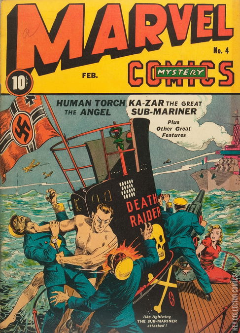 - First depiction of a Nazi flag on a Timely (Marvel) cover