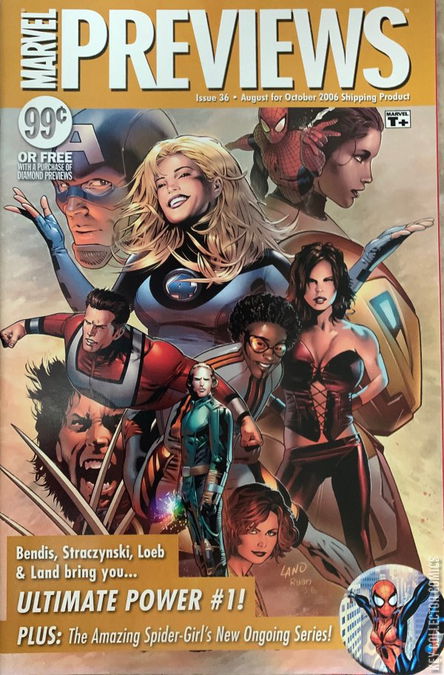 August for October 2006 Shipping Product. Cover ads: Bendis, Straczynski, Loeb & Land brings you... ULTIMATE POWER #1! Plus: The Amazing Spider-Girl's New Ongoing Series! Back Cover ads: Ultimate X-men #75! What is the secret of Ultimate Cable?