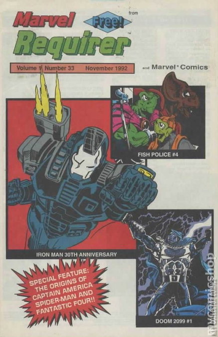 Double size 16 page issue with origin tales. Doom 2099 #1, Fish Police #4, 'Iron Man 30th Anniversary'; 3-page origin tale of Spider-Man; 2-page origin tale of Captain America; 2-page origin tale of the Fantastic Four. 6 5/8-in. x 10 1/8-in.