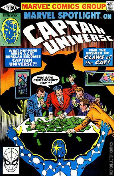 Last Issue...Monty Walsh is a small time cat burglar who wants to make one final heist to make himself famous. His target is a big time Maggia crime boss in New York. However Walsh is caught and shot dead by Maggia goons while attempting his escape. As the burglar falls to his death, the Uni-Power saves his life by choosing him as the next Captain Universe. But will the one time crook use this second chance for good or greed? Find out what happens when a cat burglar becomes Captain Universe!Note: Peter Parker and J. Jonah Jameson appear as voices only.