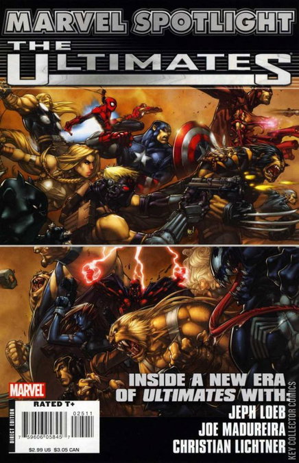One of the hottest comics of the decade is about to get even hotter! Mark Millar and Bryan Hitch have delivered not one, but two epic runs on the Ultimate Universe's greatest heroes, with the triumphant ULTIMATES and ULTIMATES 2 becoming modern day classics. Now they step aside for an unbelievable combo of superstar talent to take over with ULTIMATES 3! Superstar writer Jeph Loeb and the awesome art of Joe Madureira and Christian Lichtner promise to find new ways to define the word Ultimate, and SPOTLIGHT will pull these three titanic talents aside for their take on the new series, as well as a look back at Millar and Hitch's masterpiece. It's Ultimate Spotlight with ULTIMATES 3!
