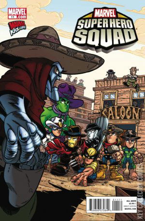 It's a tale out of time in the Old West when seven Squaddies come together to protect a small village from the diabolical desperado, El DOOM! Don't miss--"The MAGNIFICENT SEVEN SQUADDIES!" Plus--What does it take to get three superheroines--Wasp, Tigra, and She-Hulk--full status as official members of the SUPER HERO SQUAD...? How about saving all the Boy Squaddies from certain doom and turning back an Alien Invasion?!? Yep. That oughta do it. Read "The OLD ORDER CHANGETH!"
