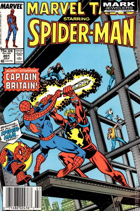 INTRODUCING, CAPTAIN BRITAIN This story is reprinted from MARVEL TEAM-UP #65 UNLUCKY BUCK$ ... OR THE ILLEGAL EAGLE PART 1