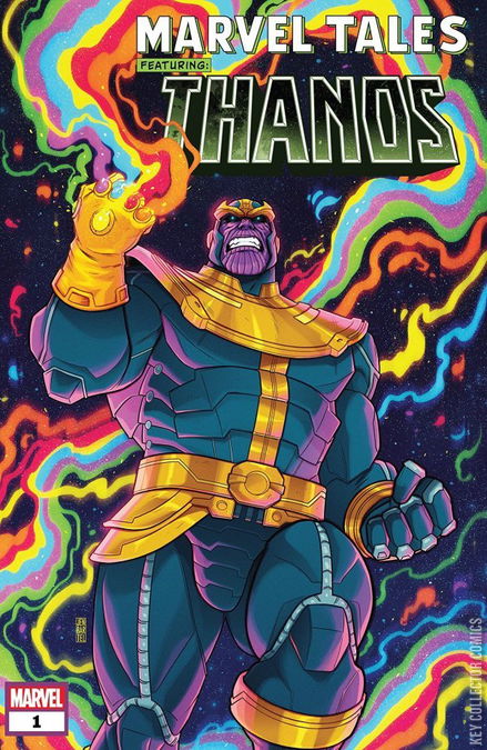 The most ruthless villain in the Marvel Universe takes center stage as we celebrate the 80th anniversary of the House of Ideas with the era-spanning MARVEL TALES! This anthology series shines a spotlight on fan-favorite characters, features timeless stories and highlights some of Marvel’s most impressive talent from the past eight decades — and for Thanos, it could only be the cosmic maestro, Jim Starlin! Reprinting the classic tale, written and drawn by Starlin, that first revealed Thanos’ stunning connection to the deadliest woman in the galaxy — Gamora — from WARLOCK (1972) #10! Another Starlin-scripted epic pits the Mad Titan against one of the MU’s greatest evils — the devilish Mephisto — in SILVER SURFER (1987) #45! And Gamora gets the chance to unleash her full fury on her twisted father figure in WARLOCK AND THE INFINITY WATCH #8!