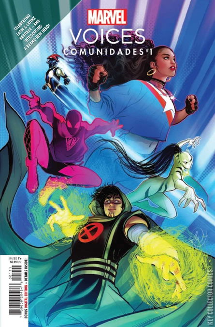 INTRODUCTION / A SMALL MERCY / MUSIC TO MY EARS / SECRET SAVIOR / SHARK-GIRL'S DAY OFF / MORE WITH LESS / CELEBRATION Returning for another rousing celebration of Marvel's Latin/x characters and creators is MARVEL'S VOICES: COMUNIDADES! Legendary creator Fabian Nicieza takes to the stars in an action-packed Nova adventure! Superstar Edgar Delgado continues to show off his writing chops with a spine-tingling spider escapade with Miles Morales! And award-winning author Alex Segura blazes a new trail for White Tiger—and introduces a brand new character to the Marvel Mythos! And that's only scratching the surface—not to mention the amazing lineup of new and established artists lending their voices to this astounding anthology. Trust us, you don't want to miss out!