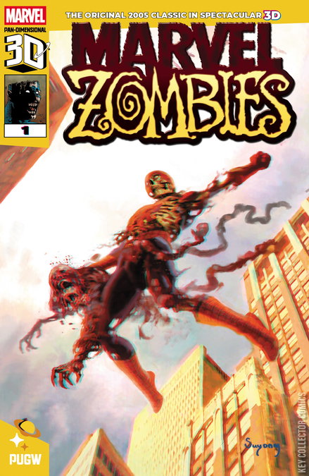 Appearing in their first starring series- the Marvel Zombies! On an Earth shockingly similar to the Marvel Universe's, an alien virus has mutated all of the world's greatest super heroes into flesh-eating monsters! It took them only hours to destroy life as we know it -but what happens when they run out of humans to eat?! Witness the arrival of the Silver Surfer!