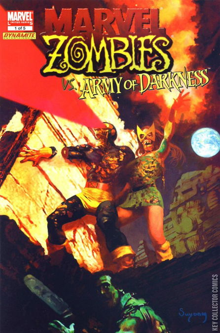 This is it true believers, the cross-over of the century begins here! The Marvel Zombies come face-to-face with Dynamite Entertainment's Ash from the Army of Darkness! Ash has faced legions of the undead before, but never like this as he lands in the heart of New York just as the Zombie outbreak begins! See how his actions help turn more heroes and villains into Zombies! Under the watchful eye of Marvel Zombie guru Robert Kirkman, this might just be the comic event of 2007! Plus: The entire series will feature classic homage covers from painter Arthur Suydam!