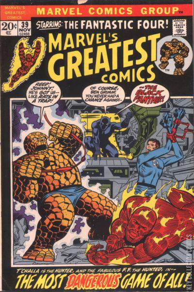 Reprints Fantastic Four #52, the first appearance of the Black Panther. However, this issue has new cover art, as was common for many of the early Marvel's Greatest Comics issues.