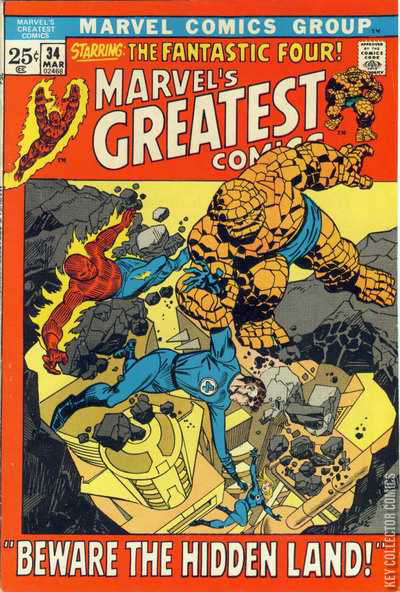 Reprinting Fantastic Four #47Reed and Sue help Triton back on his feet while Ben and Johnny go after the Dragon Man. Meanwhile back at the Great Refuge, Black Bolt has returned to reclaim the crown taken from him by his brother, the troubled Maximus, who has been running the Great Refuge like a latter day Prince John during King Richard's absence.The Fantastic Four have found a way to track down where the Inhumans have disappeared to, and soon show up in the Hidden Land, much to the delight of Crystal. Before another fight can start between the two groups, Black Bolt lets them know that if they depart immediately, there will be no ill will. Before they leave, Reed wants Black Bolt to know that they cannot stay hidden forever, and are welcome to live among the humans.Meanwhile, in the dark dungeons of the palace, Maximus has secret plans of his own!