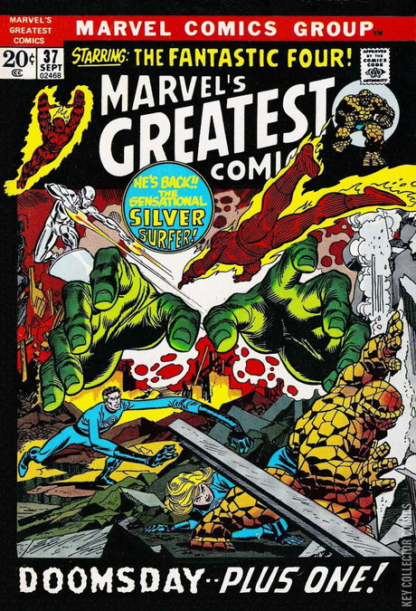 Reprints Fantastic Four #50, the final issue in the famous Silver Surfer-Watcher-Galactus Trilogy. The cover art here is different from that in issue #50.