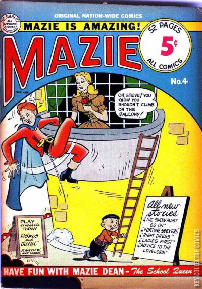 Home / Nation-Wide / Mazie / Mazie #4 Nation-Wide Released January 1951 Mazie #4 Add to Collection Want It Synopsis No synopsis available. Add to Collection Buy it on eBay Buy on eBay Low $25 Mid $75 High $250 Synopsis No synopsis available. Details Series Mazie Cover Date January 1951 Pages 52 UPC N/A Cover Price $0.05 Final Orders Cutoff N/A Creators No creators listed. Price Guide Log in or subscribe to access detailed graded price information and market insights. Log In Subscribe