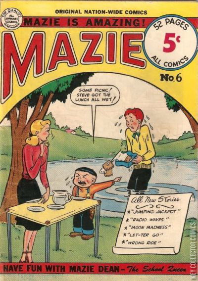 Home / Nation-Wide / Mazie / Mazie #6 Nation-Wide Released January 1951 Mazie #6 Add to Collection Want It Synopsis No synopsis available. Add to Collection Buy it on eBay Buy on eBay Low $25 Mid $75 High $250 Synopsis No synopsis available. Details Series Mazie Cover Date January 1951 Pages 52 UPC N/A Cover Price $0.05 Final Orders Cutoff N/A Creators No creators listed. Price Guide Log in or subscribe to access detailed graded price information and market insights. Log In Subscribe