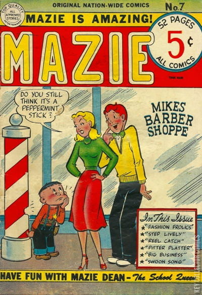 Home / Nation-Wide / Mazie / Mazie #7 Nation-Wide Released January 1951 Mazie #7 Add to Collection Want It Synopsis No synopsis available. Add to Collection Buy it on eBay Buy on eBay Low $25 Mid $75 High $250 Synopsis No synopsis available. Details Series Mazie Cover Date January 1951 Pages 52 UPC N/A Cover Price $0.05 Final Orders Cutoff N/A Creators No creators listed. Price Guide Log in or subscribe to access detailed graded price information and market insights. Log In Subscribe