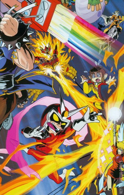 The Sonic/Mega Man Crossover sequel comes to a chaotic close with 'Worlds Unite' Part Twelve: The grand finale to 'Worlds Unite' sees our super-powered heroes Sonic and Mega Man face off against the evil Sigma in his final, most lethal form! If that wasn't enough, the Genesis Portal-ravaged reality is falling apart and time is running out to fix it! You don't want to miss the stunning conclusion to the biggest crossover event of the year! Featuring the worlds of Street Fighter, Skies of Arcadia, Nights Into Dreams, Okami, Ghosts 'n' Goblins, Alex Kidd, and more! Featuring cover art from the legendary T.Rex, a special 'Super-Powered' variant by Reilly Brown and the final part of the epic 12-part connecting variant cover series by artist Ben Bates!