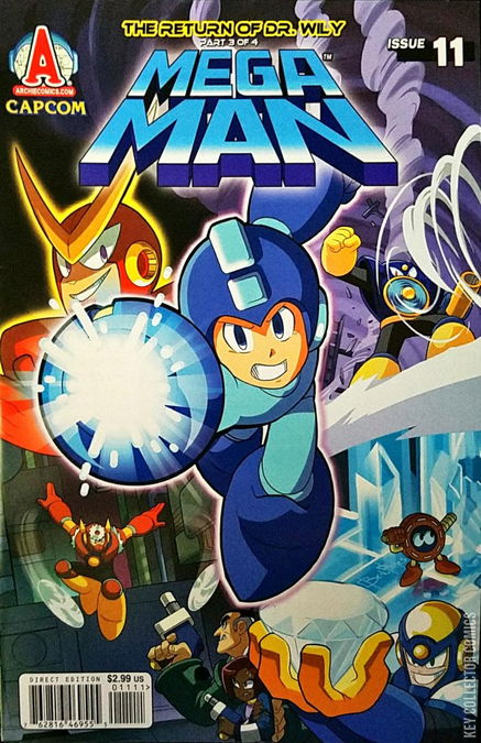 "Dr. Wily Returns," Part 3. Mega Man has been in the fight of his life against Dr. Wily's eight new Robot Masters! Fearsome as they are, Quick Man has always been there to mock Mega Man and slow him down. Now, at long last, it's the showdown you've been waiting for! And you won't believe who shows up to help Mega Man at the eleventh hour!