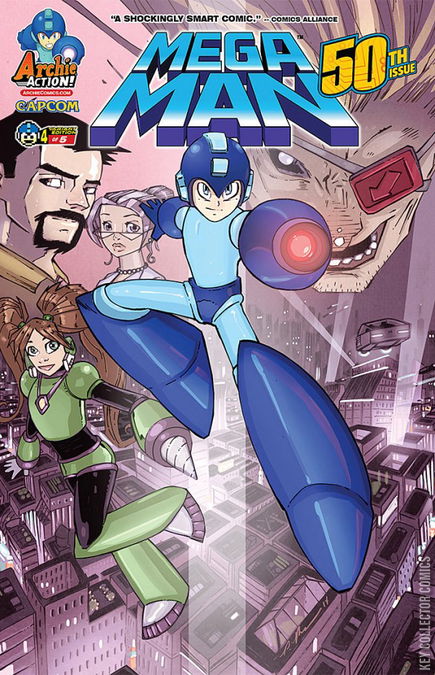 Celebrate 50 issues of Mega Man with the latest chapter in the globe-smashing Sonic/Mega Man crossover event! 'Worlds Unite,' Part Four: Act One comes to its mind-blowing conclusion! Sigma's plan reaches its first stage, and the worlds of Sonic and Mega Man have fused! It's definitely going to take more than one hero to stop the threat from the future - maybe even ten! Sonic, Mega Man, X, Sticks, the Freedom Fighters, Robot Masters, and Maverick Hunters - Unite! Plus, stick around for a special bonus anniversary story as Mega Man and X meet for the first time! Featuring a wrap-around cover from the legendary Patrick 'SPAZ' Spaziante, plus five variant covers from Edwin Huang, Irvin Rodriguez, Patrick Thomas Parnell, Roger and Idalia Robinson, and part 4 of the epic 12-part connecting variant cover series by artist Ben Bates!