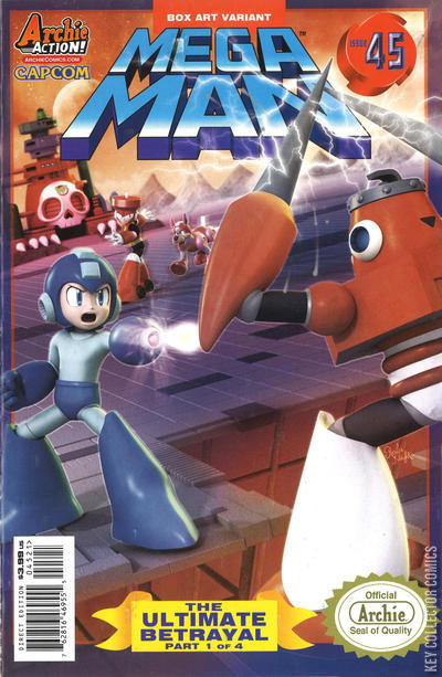 An all-new, jaw-dropping story starts here! 'The Ultimate Betrayal,' Part One: The Robot Masters have been defeated-but that doesn't mean Dr. Wily has lost yet! A battle-weary Mega Man rushes home to save his family-but is he too late? Has Dr. Light's faith been shattered beyond repair? Is this the end for our heroes? The adaptation to the legendary game Mega Man 3 begins here, with cover art from the equally-legendary Patrick 'SPAZ' Spaziante and an all-new box art variant cover from the latest Mega Man superstar Rafa Knight!
