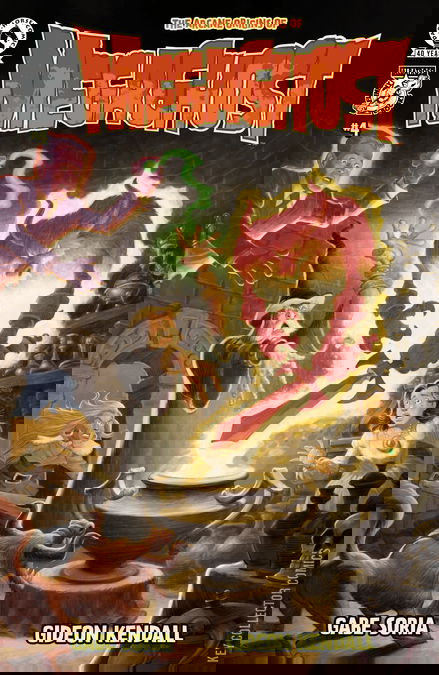 Frog gods from beneath the sea . . . possessed robot toys . . . giant clown creatures . . . colossal rat monsters . . . gargantuan vampire bats from outer space . . . titanic stone goats: Martin Magus and MegaGhost have faced all kinds of freakish foes to keep Dunwich Heights safe from supernatural kaiju. But these battles were just a warm-up, the beginning of a diabolical scheme orchestrated by the sinister Ultraghoul and the eldritch fiends known as the Nethergods! Convinced that the worldwide upheaval of evil in the present has a link to the distant past, a group of the world’s greatest occultists enlists Martin to take a wild ride through time and space, where in order to save the future, he must uncover the arcane origins of Megaghost!• Series finale!