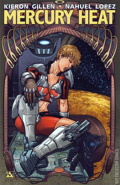 Kieron Gillen is unleashed in an original sci-fi epic like you've never seen! Cantankerous cop Luisa is on the trail of a killer and no amount of psychotic cyborg locals are going to get in her way. Fast paced action mixed with awesome sci-fi concepts makes Mercury Heat the must read thrill ride of the year. The smash-hit of FCBD continues monthly with the future world where cyborgs and memory crystals crash into a good old-fashion cop drama! Available with Regular, Wraparound, Art Nouveau, Excessive Force, and a special Interstellar Incentive Cover by Nahuel Lopez.