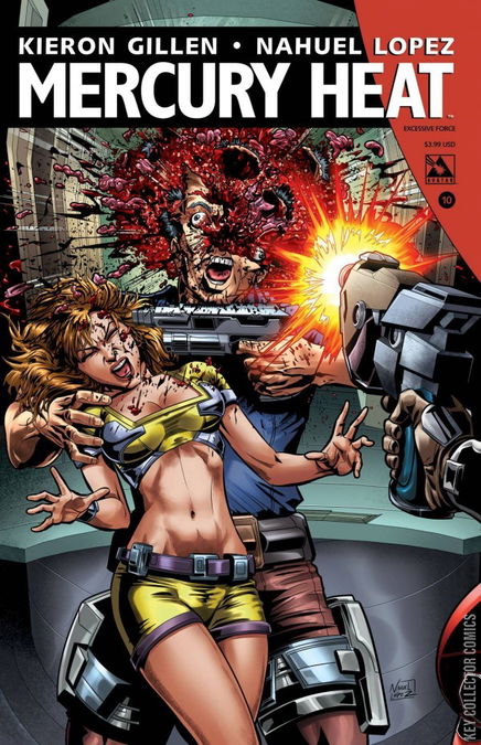 The infection on Mercury is revealed to be none other than the legendary Crossed disease, but how can that be? That was a work of fiction, right? Now Luiza finds herself in a position of having to eradicate this rapidly spreading horror before it can overtake the population of the mining town. Luiza is earning her pay on this mission! Available with Regular, Wraparound, Art Nouveau, and Excessive Force by series artist Nahuel Lopez.