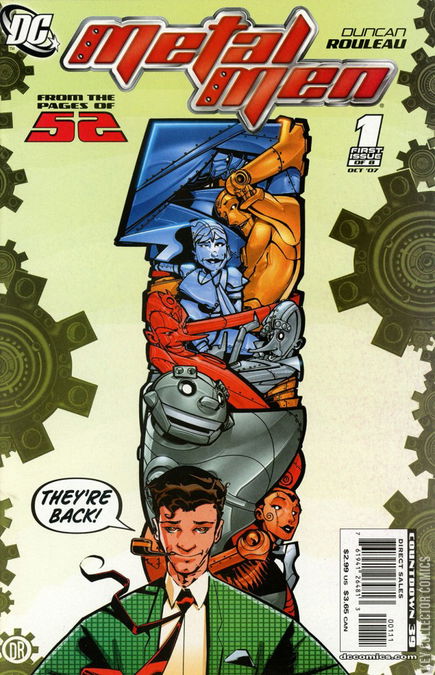 Bursting from the pages of 52 and SUPERMAN/BATMAN into their own new 8-issue miniseries by Duncan Rouleau — it's Gold! Platina! Mercury! Iron! Lead! Tin! And now Copper! Doc Magnus's creations are ready to take on all-new threats and some old, reimagined ones: Chemo, Doctor Yes, B.O.L.T.S., The Balloonatic and his Orphan Army, as well as the Robot Renegades led by an old Manhunter Robot! But the greatest threat lies in Le Cabinet Noir and its bid to control the natural order using dangerous lieutenants like the Nameless, an armored being that feeds off the blood of the innocent and controls the Gogoloth, giant stone Golems made of Granite, Bizmuth, Onyx and Lime.