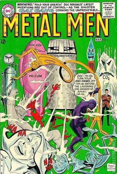 The Metal Men are returning to Earth, after a prior adventure on another world. Platinum had provided the inspiration for that world's robot slave population to rise up against their enslavers. The Metal Men's ship is caught in a meteor storm. One meteor breeches the ship's shields, becoming lodged in the hull. With the majority of the Metal Men still recovering from the slave uprising, Doctor Will Magnus goes out on the hull, himself, to dislodge the meteor. Platinum follows. Platinum prevents further meteors from hitting Magnus, sustaining heavy damage. Magnus carries Platinum back on board the rocket ship, to begin repairs. By this time, the other Metal Men have revived. Gold notices that Magnus' space suit has been compromised, and worries about potential exposure to cosmic radiation. Magnus brushes off the Metal Man's concern. In the days that follow, Magnus begins to undergo a transformation, eventually becoming a robot himself.Platinum is beside herself with joy, believing that she and Magnus can finally be together. Her fantasy of a perfect life with Magnus is shattered, though, when Magnus, as a robot, proves to be far less emotional than the Metal Men. Coldly, Magnus rebuffs Platinum's advances, then orders the Metal Men to make themselves useful. Pulling Tin aside, Magnus threatens to scrap the humblest of the Metal Men, unless Tin can prove his worth. While the Metal Men busy themselves with their various tasks, their attention is drawn to another rocket ship, being pursued by a comet-like creature. Gold requests permission to intervene, but Magnus commands him to stand down. Disobeying thier creator, the Metal Men set about to rescue the imperiled crew of the rocket ship. Lead molds himself into an enormous hand, and grabs both the rocket and the creature. Lead leaves just enough of a gap, in the hand, for the creature to pour through.Tin molds himself into an enormous cup to catch the comet-like creature, but proves too fragile to hold it. Mercury tries...