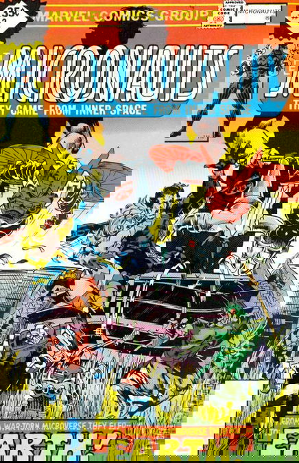 Escaping from Prince Shaitan and Baron Karza, the Micronauts arrive on Earth where they are the size of small toys. Prince Shaitan succeeds in following them and attacks them in the garden of the Coffin Family. Complete summary (with Spoilers)Escaping from Baron Karza and his dog soldiers, The Micronauts pass through the space wall in their spacecraft, the Endeavor. Suddenly, the vessel emerges into normal gravity and crashs into a amazing lanscape with huge vegetation. Without serious damages to either themselves or their ship, The Micronauts decide to explore this strange planet. They find a big metal construction witch is identified as a swing before they are "attacked" by a ... giant Cocker Spaniel. They are on Earth but their relative size hasn't changed, and they are only a few inches tall !!!In the garden, a little boy (but a giant to the heroes) uses a lawnmower wich Acroyear destroys in order to protect his teammates. Realizing that The Micronauts are actual people, the adventurers and the boy discuss what has happened. Marionette relates the story of the Micronauts to the giant youth, named Steve Coffin.After a few minutes, Prince Shaitan, sent by Baron Karza, arrives on Earth with a small fleet of Acroyear battle cruisers. The battle between the Acroyear's fighters and the Micronauts (helped by Steve), destroys Steve's garden. The heroes succeed in defeating Shaitan's attack force, but Shaitan escapes, and now Steve has to explain all the damage to his father.