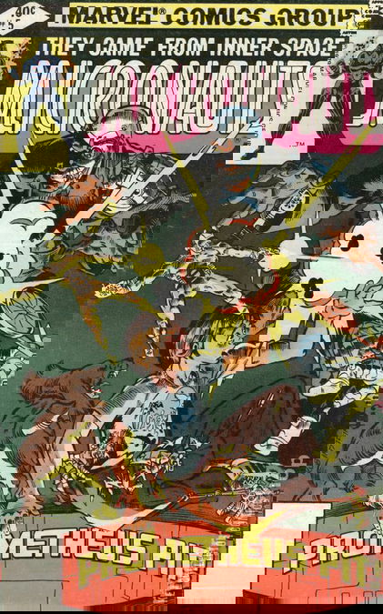 The Micronauts and the Coffin family fight a mad professor who build a Pit as a door for the Microverse.Complete Summary (with Spoilers)On Homeworld, Slug, leader of the underground movement is imprisoned in the body Banks of Baron Karza. But this one don't know who she is and watch at her like another pity prisoner of his Dog Soldiers while the young woman is trying to locate and liberate the Prince Argon . At this moment, the prince , transformed by Karza in a centaur, succeed to free by himself but the tyrant stop him in a few seconds, Unfortunately, Slug shows herself insulting the Baron and this one decides to give her beautiful body to a old duchess Belladonna., a faithful customer of the Body banks.On Earth, In their flying vehicle (called astrostation), the micronauts search the brainwave patterns of their friends Bug. The signal leads them in front of the Human Engineering Life Laboratory, one building in the Cap Canaveral complex. That when they find Muffin, the cocker spaniel of the Coffin family, in a car. After liberate him, Mari enters in the Laboratory riding him (since all the Micronauts are a few inch tall). Her friends, them, have to enter by the ventilation shaft.Deeper in the building, Ray Coffin and his son Steve discover that Philip Prometheus already knows the microverse. In his laboratory, a lot of specimen of Microverse inhabitants lie in jars and some print-out show Acroyear warriors and others Microverse species.However, when Steve talks about Commander Rann and the Spacewall (see Micronauts #2 for their encounter), the professor Prometheus becomes excited and violent. Becoming half-human, half-machine in a space accident, he want to go in the Microverse for obtaining a more advanced science and transform himself as a god. It's the reason why he build the Prometheus Pit, some door for the Microverse. In order to keep the secret, he even build robots as his security guards.But all this drives him insane and he starts to hurt Steve. So Bug,...