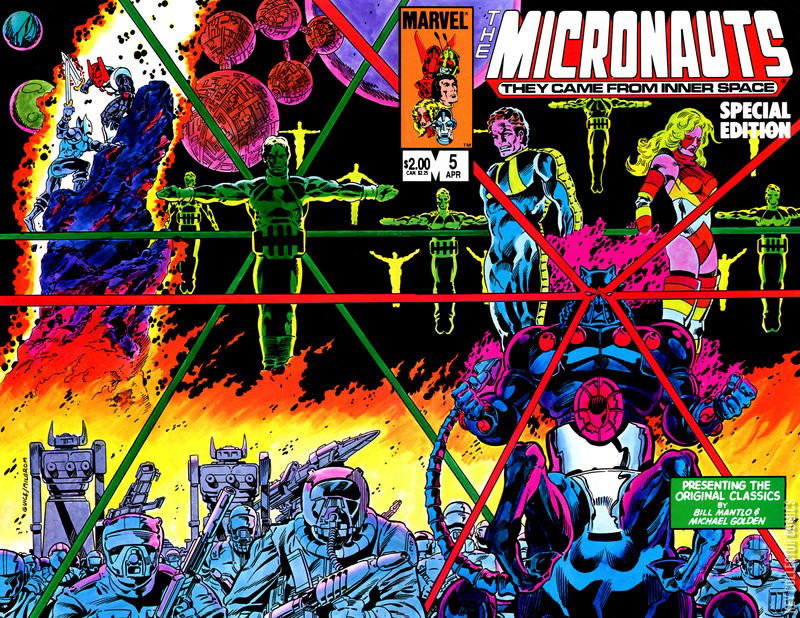 Final Issue. Reprints Micronauts vol. 1 #11-12 as well as a 4 page back-up from #23 and a 6 page back-up from #25.