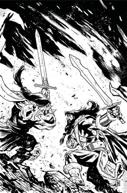 From the writer of Barbaric comes the world-hopping, skull-crushing adventures of The Mighty Barbarians! They're barbarians. They loot, they plunder, they conquer. That's what they do, and they do it alone... until NOW! Besieged on all sides, the intrepid team of mighty barbarians have one hope: that another hero who has already been taken by the evil Aleph and their creators can be freed from the spell cast upon him... and absolutely obliterate everything and anything in his path. Kull and crew will cross paths and swords with a true legend in hopes that he becomes an ally. Enter Thongor! Before The Avengers, The Justice League, The X-Men, before it all... stood The Mighty Barbarians!