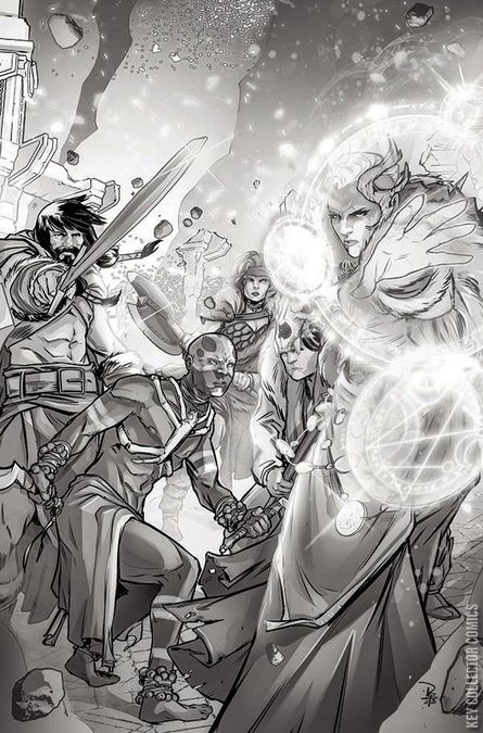 From the writer of Barbaric comes the world-hopping, skull-crushing adventures of The Mighty Barbarians! They're barbarians. They loot, they plunder, they conquer. That's what they do, and they do it alone... until NOW! Besieged on all sides, the intrepid team of mighty barbarians have one hope: that another hero who has already been taken by the evil Aleph and their creators can be freed from the spell cast upon him... and absolutely obliterate everything and anything in his path. Kull and crew will cross paths and swords with a true legend in hopes that he becomes an ally. Enter Thongor! Before The Avengers, The Justice League, The X-Men, before it all... stood The Mighty Barbarians!