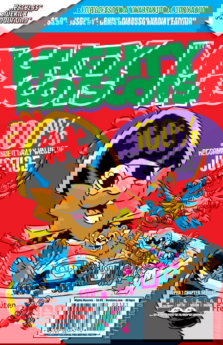 7 living advertisements and a former childhood star become the most unlikely super hero team of all time! Say hello to the weirdest superhero group to ever grace a four-color panel! When a local supermarket becomes ground zero for an evil experiment, the Mighty Mascots race to the scene, but what they find there may bring a quick end to their newfound heroics!