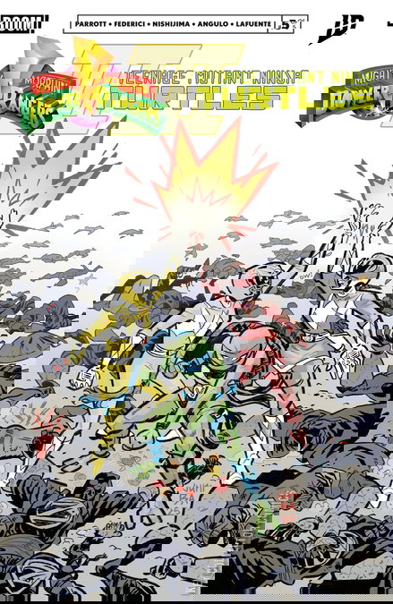 Don’t miss the shell-shocking conclusion of the fan favorite crossover! After perilous battles, the Rangers and Turtles must put their differences behind them with help from an unexpected new Ranger. The Rangers and Turtles must now face off against Super Zedd and the evil mutant Rangers. Will our heroes find the courage within themselves to save the day against seemingly insurmountable odds? New York Times–bestselling author Ryan Parrott, fan-favorite Italian comic book artist Vincenzo Federici, and Jodi Nishijima bring this celebrated, retro series to an epic end in this final, action-packed issue!