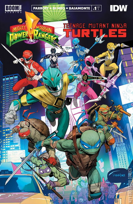 THE MIGHTY MORPHIN POWER RANGERS AND THE TEENAGE MUTANT NINJA TURTLES MEET FOR THE FIRST TIME! The Power Rangers arrive in New York City to find Tommy Oliver (a.k.a. The Mighty Morphin Green Ranger) but soon discover he's joined forces with the villainous Shredder and the Foot Clan! As the Rangers are sent reeling by this betrayal, they 're confronted by another (fr)enemy... the Teenage Mutant Ninja Turtles! Can these heroes find a way to work together to defeat the bad guys and save the world from total destruction?! Written by Ryan Parrott (Power Rangers: Necessary Evil) and illustrated by Simone di Meo (Mighty Morphin Power Rangers, Venom Annual), the Mighty Morphin Power Rangers fight - and maybe team up with - the Teenage Mutant Ninja Turtles for the first time.
