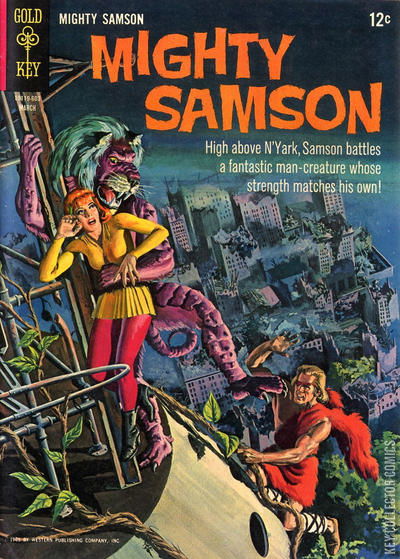 No ads in book. Painted cover. Back cover has pinup of front cover painting. Entire issue from cover to cover is comic stories and one page strips. Mighty Samson in "The Death Geysers" and "The Double Enemy" in which Mighty Samson faces a mysterious man-beast. Issue also has "Mighty Samson" features on inside covers. No art/story credits given. Cover price $0.12.
