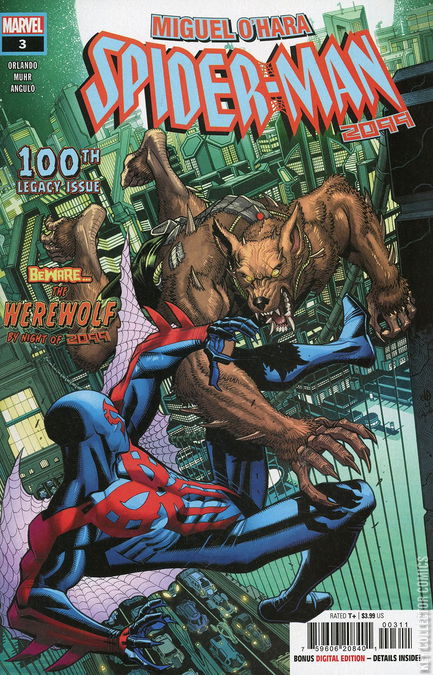 BEWARE - WEREWOLF UNLEASHED! � Cursed by blood - WEREWOLF BY 2099! � SPIDER-MAN must take on the WEREWOLF in a no-holds-barred battle! � An over-the-top MONSTER MASH for the 100th LEGACY ISSUE! RATED T+