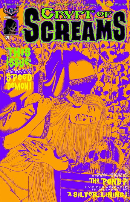 Cult horror comics creator Mike Wolfer (Friday the 13th, Daughters of the Dark Oracle) unleashes an all-new anthology of terror tales designed to make you scream! Printed in glorious black and white to emulate the classic horror tales of the 1970s, CRYPT OF SCREAMS will take you where no other modern fright anthology dares to go. This issue's tales are "Speed Demon," an Old West shocker of a young man who enters a demonic contract to exact a terrifying revenge, followed by the hauntingly romantic "The Pond," in which a young woman encounters a stranger who will alter the course of her life forever. Rounding out the horrific trio is "A Silver Lining," a classic shocker of an 18th century mansion, its wealthy inhabitants, and a lycanthropic horror that stalks its halls in search of human flesh! Prepare to check your sanity at the door when you enter the CRYPT OF SCREAMS! All stories are written and illustrated by Mike Wolfer, and are for mature readers only.