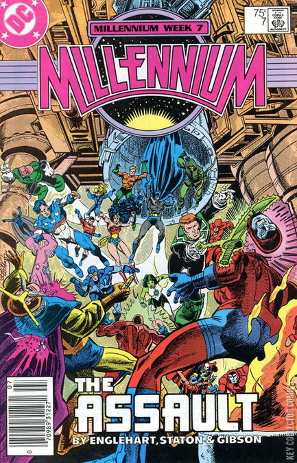 This is week seven of DC's companywide crossover of 1987. The chosen ones continue their training under the guidance of the two Guardians. Flash, Mister Miracle, Batman, and others seek out the remaining Manhunters. Written by Steve Englehart, with layouts by Joe Staton and finishes by Ian Gibson. Week 7 Crossovers: Adventures of Superman #437; Booster Gold #25; Green Lantern Corps #221; and Infinity, Inc. #47. Celia Windward's plot regarding the mysterious limousine continues in Adventures of Superman #437.