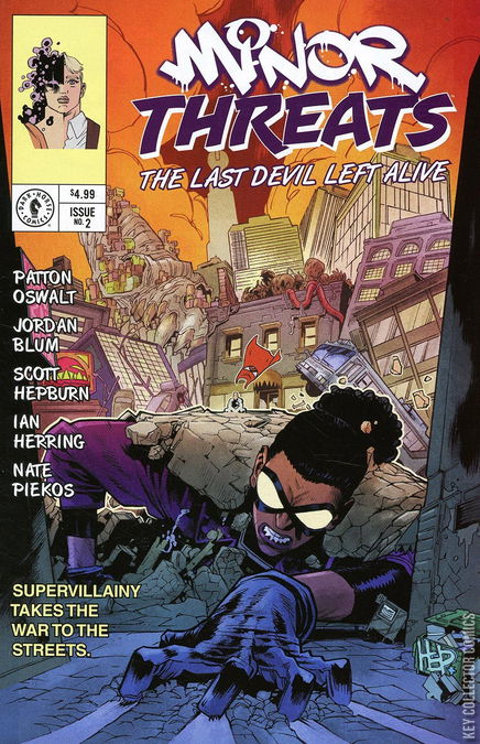 The hit superhero saga that’s Watchmen meets The Wire returns from Patton Oswalt and Jordan Blum, showrunners of Marvel’s M.O.D.O.K on HULU, and superstar artist Scott Hepburn (Tom Morello’s Orchid).The Minor Threats have gone underground, standing on their last leg as they fight for the future of Twilight City. Frankie Follis aka the supervillain Playtime desperately needs a leader for her new ragtag team of rejects and sets her sights on recruiting the greatest superhero of all—The Searcher! After traveling to Meteor Falls she instead finds a recently depowered shell of the former champion of justice. The Searcher: no more. On top of that Frankie, Scalpel and the others are attacked by an all-new, all-deadly version of The Action. And if that wasn't enough, the team-up no one asked for—Brain Tease and Barfly pull a heist! And folks, it doesn't go well . . .• Five-issue series.