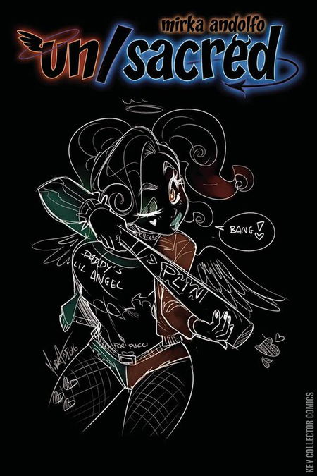 In Un/Sacred Vol 2, Mirka and her special guests invite you once again into the world of Angelina, Damiano, and their daughter Eden!  Issue 6 gives us two endearing stories.  In "Pongo", we meet an angelic looking dog that that ends up being a real devil, and causes quite the commotion.  And in "The Blue Pills" we fast forward for a glimpse into the life and marriage of what are now a very old (but still amusing) Damiano and Angelina.
