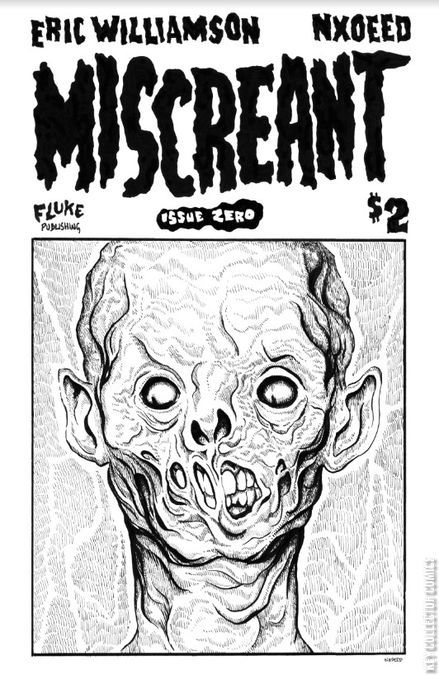 Miscreant is a comic, creative writing & art zine created by Eric Williamson and NXOEED (James B. Hunt) and published by Fluke Publishing. The premier Issue Zero includes: Black Mood, Periphenes & Ixitl, Another Theory For Evolution, I Don't Know You But You Were Fucked, Directionless, Amnesia, What Is Wrong With Us Now?, and The Obligatory One-Eyed Cat. Welcome to Miscreant! * * * * * Available now (or for order) at your LCS, Independent bookseller, record shop, or anywhere comic zines are sold. Or purchase directly online at: https://fluke.bigcartel.com/product/miscreant