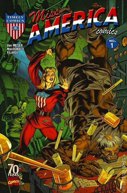 A brand new adventure of one of comics' original super-heroines! Plus an extra-special classic reprint of one of her original 1940's adventures. Jen van Meter (Black Lightning) and Andy MacDonald (PUNISHER: WAR JOURNAL) take you back to a time when the fate of the United States rested not only in thousands of men fighting for freedom overseas, but also in the hands of the women back home building the equipment that would keep the country running and winning! So get ready Axis Annie, Vichy Vixen, and...Madame Mauzer! Her name might be Miss America…but she sure ain't gonna miss a chance to sock evil in the face! (This solicit brought to you by a very tipsy editor!)