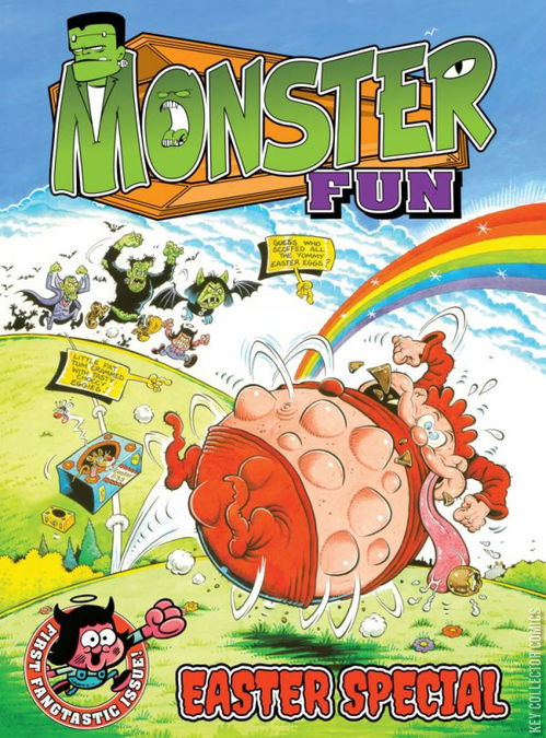 The first issue for the revived Monster Fun . Easter Special 2022 (06 April - 31 May 2022) Contents: Kid Kong: "Kid Kong vs F.L.O.O.F." (Script: Alec & Rowan Worley; Art & Letters: Karl Dixon) Steel Commando (part 1) (Script: Ned Hartley; Art: Dan Boultwood; Letters: Leila Jess) Frankie Stein: "Brain Ache!" (Script: Cavan Scott; Art: John Lucas; Colours: Gary Caldwell; Lettes: Amber Sea) Draculass: "A Grand Day Out" (Script: Lizzie Boyle; Art: Rositsa Vangelova; Letters: H. A. O'Millar) The Story of Easter (Script, Art & Letters: Juni Ba) Hire a Horror: "Rabid Peter" (Script, Art & Letters: Max Baxter) Martha's Monster Make Up: "Trace's Faces" (Script: David Bulmer; Art: Abigail Bulmer; Letters: Oz) The Leopard from Lime Street: "Birthright" (part 1) (Script: Simon Furman; Art & Letters: Laurent Lefeuvre) Hell's Angel: "A Very Beastly Easter" (Script, Art & Letters: Chris Garbutt) Cover Art: Neil Googe; Cover Colours: Len O'Grady A limited Webshop edition of Monster Fun Issue 1 was available on the Treasury of British Comics website, with an exclusive cover and a never before seen Sweeny Toddler comic strip written and drawn by Tom Paterson: Sweeny Toddler: "Nightmare!" (Scipt & Art: Tom Paterson; Letters: Oz)