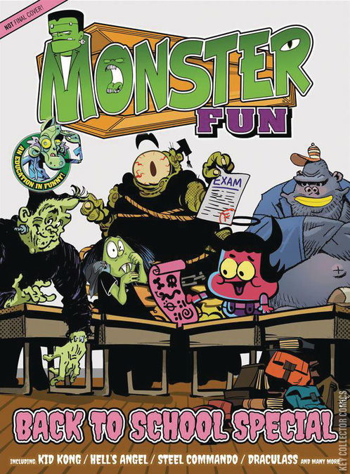 This August let Monster Fun educate you in the funny! The Steel Commando and his friends team up with Britain's coolest superhero - Johnny Future - to take on a robot menace; Hell's Angel decides that she would like to go to school where she makes a lasting impression on some bullies; Frankie Stein takes a last minute holiday and meets some monsters amongst the Egyptian sand dunes; the Leopardman has his dreams invaded by the villainous Nocturne; plus all new strips featuring Draculass, Kid Kong, Hire A Horror, Martha's Monster Make Up, and a superb new story from the wild imagination of Juni Ba.