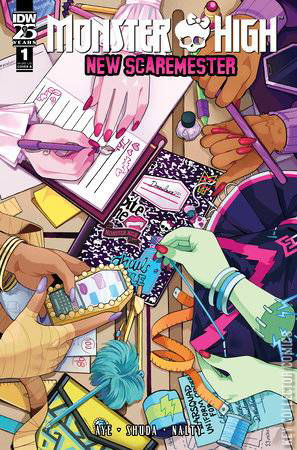 Spotted: IDW's most spooktacular series ever. From the spine-chilling minds of Monster High superfans Jacque Aye and Caroline Shuda comes Monster High: New Scaremester. Ghouls and boos are heading back to Monster High for a new scaremester. And while they'll certainly be serving lurks in the hallway and haunting study howl, rumor has it that trouble is brewing.Draculaura, Clawdeen Wolf, Cleo de Nile, and Frankie Stein have never met a bad scare day or monstrous problem they couldn't fix together, but�Drac's in over her fangs with her new responsibilities, Clawdeen and Cleo aren't speaking, and Frankie's life may be in danger. The beasties need a fresh start, and what better time than the new scaremester? Surely a reconciliation is lurking just around the dark and foreboding coroner.