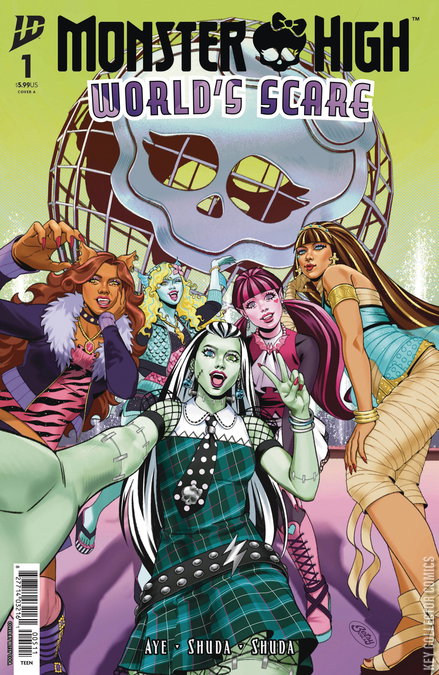 Surprise, ghouls - I'm baaack. Did you miss me? For those unacquainted, let me reintrobooce myself. I'm Monster High's purrmiere gossip account, CryptCrier. I know everything and everyghoul. And here is my juiciest piece of gossip yet: IDW is bringing readers a faboolous new miniseries from fang favorites Jacque Aye and Caroline Shuda, starting with a double-sized first issue. Frankie Stein, Draculaura, Clawdeen Wolf, Cleo de Nile, and Lagoona Blue are starting a new scaremester at Monster High, so this is a creeperific jumping-on point for new fangs. How eekciting. This year, the World's Scare is in New Salem! The brightest minds are gathering to exhibit their latest breakthroughs that could change monster-kind furever. And Monster High's very own Frankie Stein is dreaming up something monstrous to honor her late father, Headmaster Frankenstein. With a little help from her fiends, Frankie is sure to shock the judges.- XOXO CryptCrier