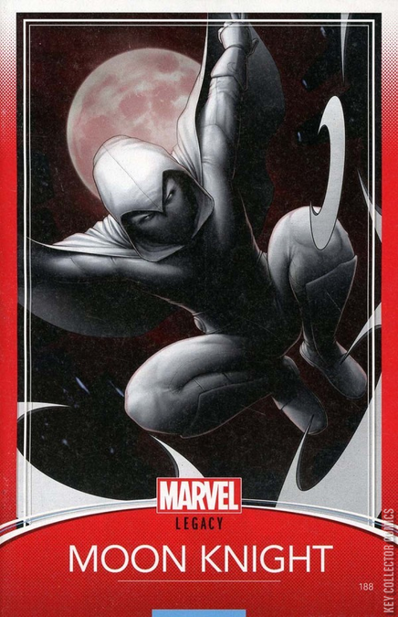 CRAZY RUNS IN THE FAMILY, PART 1 A new day is dawning and with it comes an enemy unlike any that Marc Spector, Moon Knight, has ever faced. Moon Knight has always been a protector from the shadows, but this new enemy is looking to extinguish that shadow with blinding light and fire. Get ready for the introduction of Moon Knight’s greatest nemesis! LEGACY #188