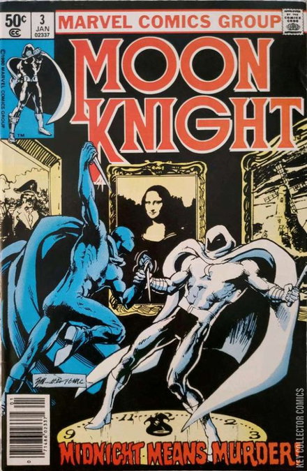 "MIDNIGHT MEANS MURDER" On three consecutive nights, Moon Knight apprehends three criminals at the same time. As if that weren’t coincidence enough, each criminal has stolen a valuable item related to each other. Moon Knight vs. the Midnight Man!