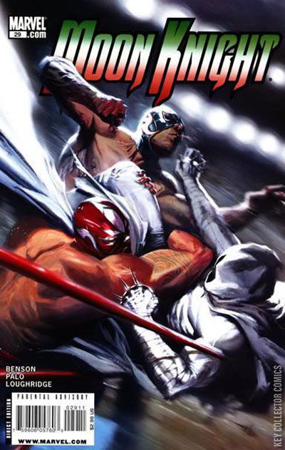 'DOWN SOUTH,' PART 4 Let's get rrrrrrrreaaaaaaaaady to rrrrrruuuuuummmmmmblllllle!!! Playing protector to a young woman who's in the crosshairs of the meanest, craziest, most indefatigable bounty hunters south - or North - of the Rio Grande. Meet Los Bros Zapata, a tag-team Mexican wrestler duo who moonlight as assassins, and who'll do anything - anything - to take down their mark. Moon Knight's gonna have his hands full, but luckily, he's got someone in his corner: The Punisher.